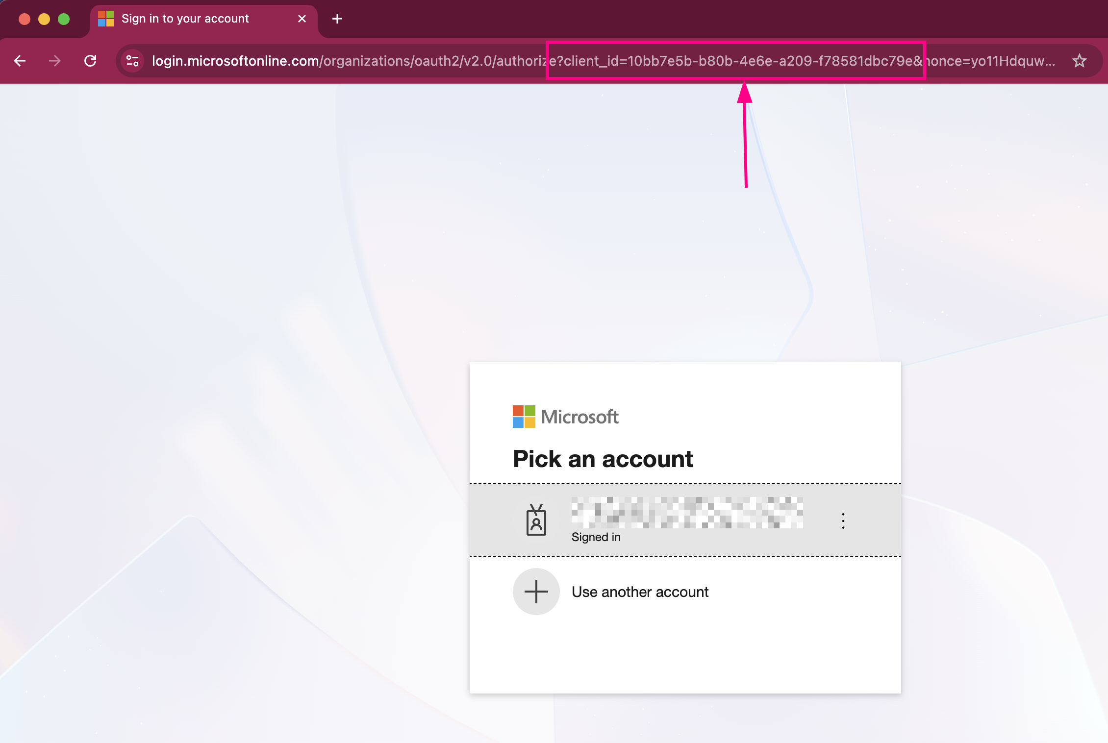 - If you have not yet authorized the connection, you can see the application ID visible in the address bar when initiating (but without completing) the connection: