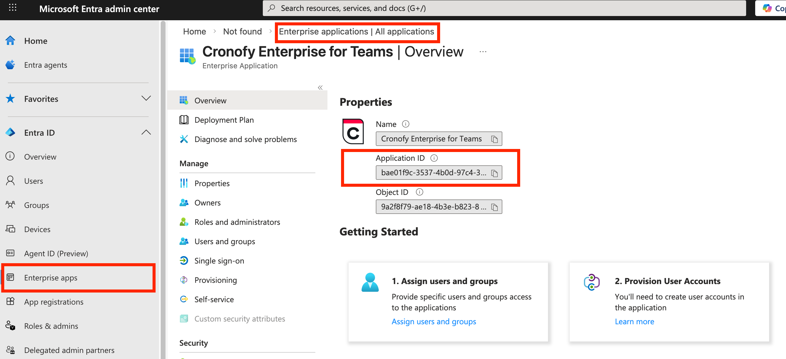 bae01f9c-3537-4b0d-97c4-30d4a6f2c972. If you wish to verify this, you may do so as follows:- If you have already authorized your connection, you may confirm this by visiting the Azure Active Directory Enterprise application portal as seen below.