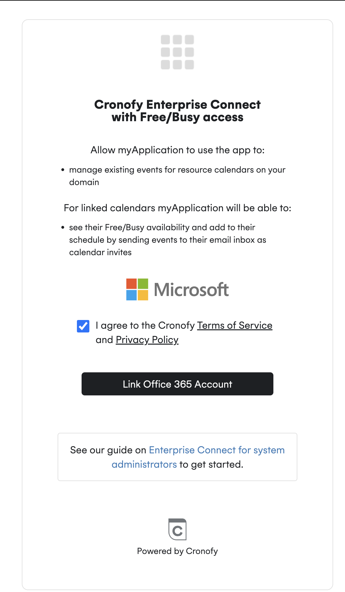 To enable Enterprise Connect, log in to your Office 365 tenant as a user with Azure Active Directory Global Administrator access. This is the minimum required level of access to authorise your organizations calendars via Enterprsie Connect.