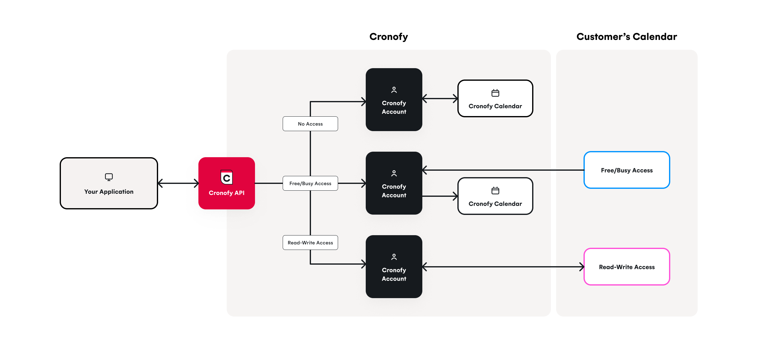 The connection between your application and Cronofy has been handled via our scopes. These tell us how you want Cronofy to interact with customers on behalf of your application. However, customers may want more control on how they want Cronofy to access them and their calendars.