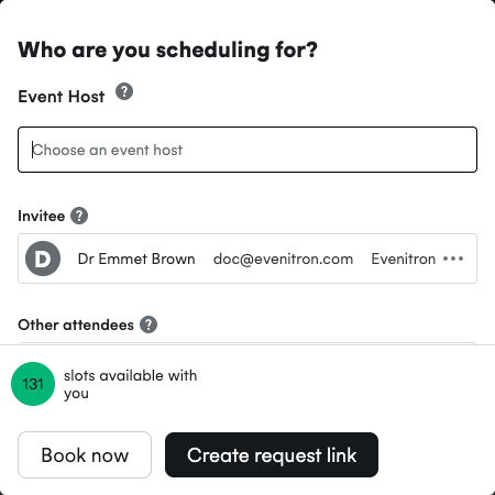 Book Now adds a new button to the Scheduler, adding a second way to create requests. Rather than creating and sending a link for someone to choose a time, this flow lets the coordinator immediately choose a time. This is perfect for scenarios such as having an Interview Candidate on the phone, and wanting to quickly see available times for an interviewer and still leverage the integrations and workflows in the Cronofy Scheduler.